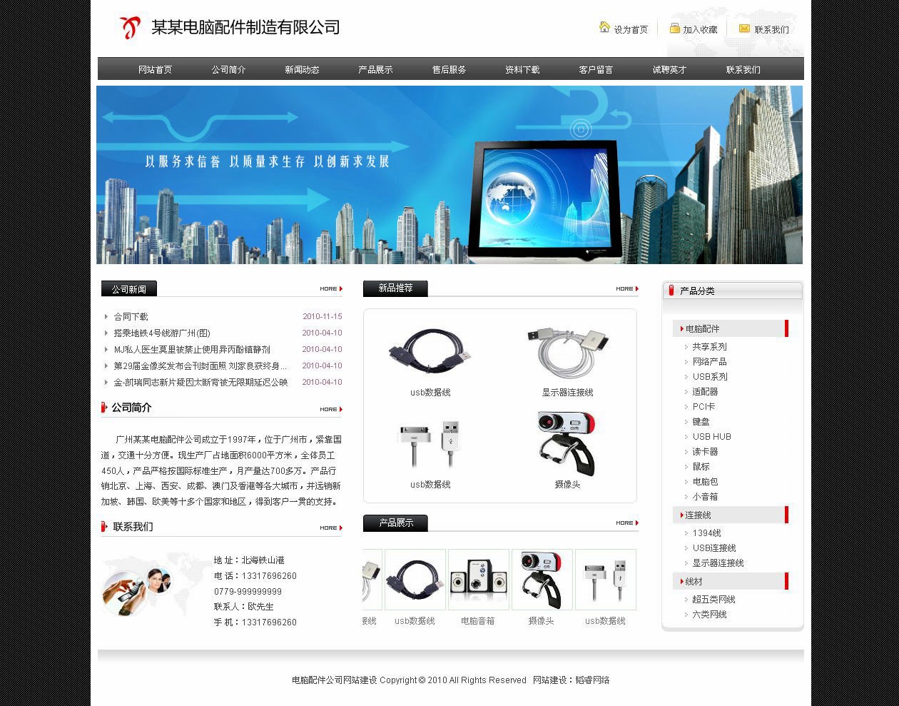 電腦配件公司網(wǎng)站,普通模版